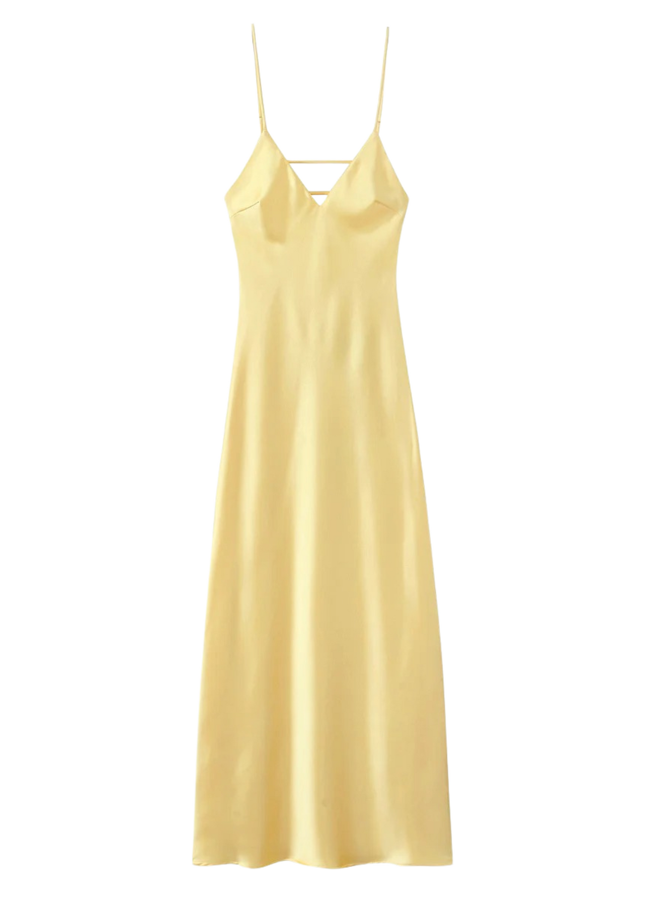 Croială lungă fluidă cu cădere netedă tip bias, care se mulează fără să strângă